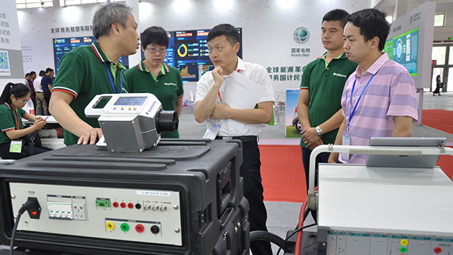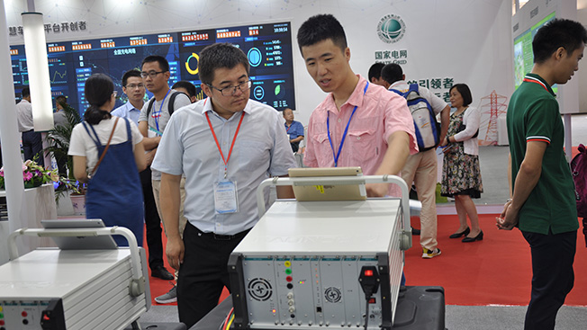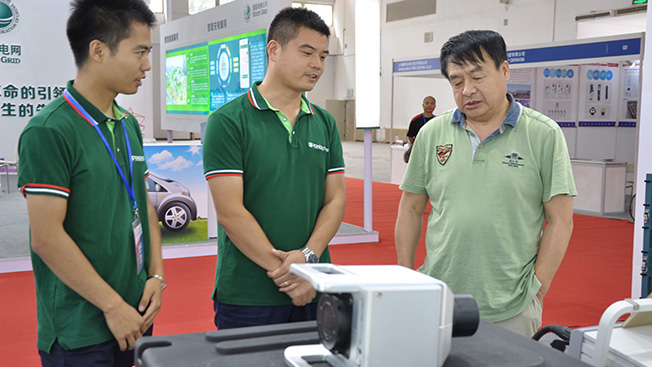 ▲專業(yè)觀眾參觀博電便攜式交直流充電樁測試儀