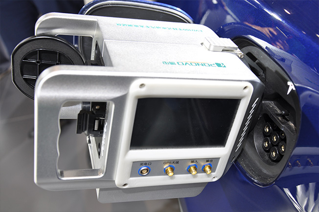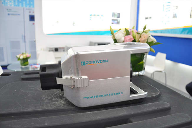 ▲手持式電動汽車充電檢測儀為特斯拉現(xiàn)場操作演示