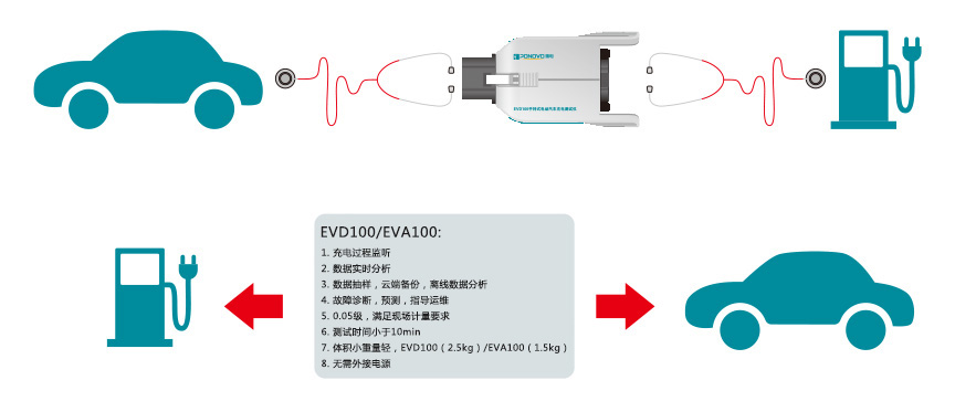 EVD100手持式直流監(jiān)測儀通過對充電過程中模擬信號和數(shù)據(jù)信號的全程監(jiān)測、記錄,實(shí)現(xiàn)電動汽車充電的現(xiàn)場診斷,故障分析;以插接的方式連接外部負(fù)載,可實(shí)現(xiàn)電動汽車充電機(jī)互操作性、通訊一致性和電氣性測試。