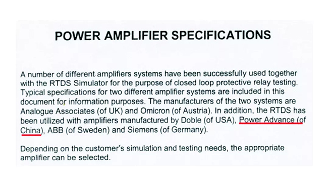 2007年,博電數(shù)字仿真專用放大器成為加拿大RTDS在技術(shù)文件中推薦的亞洲國(guó)家產(chǎn)品。