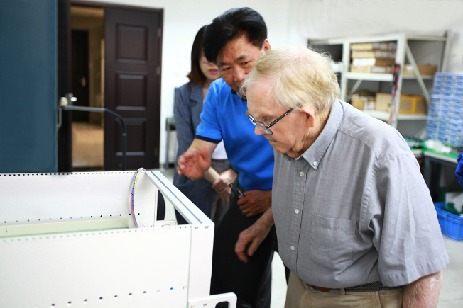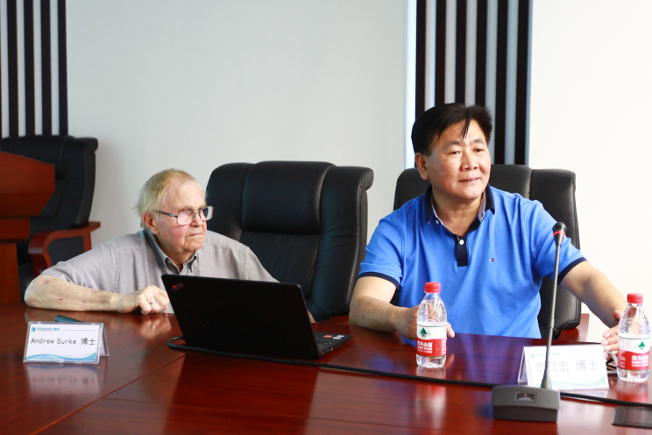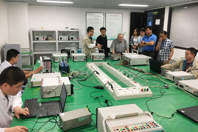 博電副總經(jīng)理陳國(guó)飛博士、CTO周文聞博士帶領(lǐng)Andrew F. Burke博士一行參觀博電大堂展廳,博普檢測(cè)中心,以及研制中的超級(jí)電容產(chǎn)品。