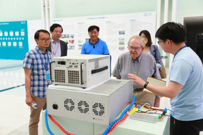 ▲Burke博士一行參觀博電與美國(guó)NI合作研發(fā)的模塊化功率測(cè)試平臺(tái)