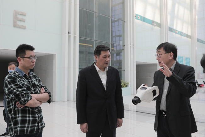 ▲劉書記一行仔細(xì)了解手持式電動汽車檢測儀