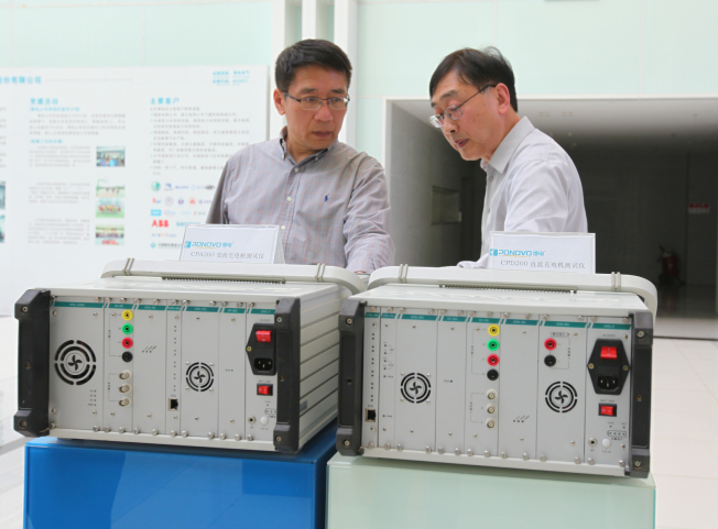 劉總一行首先參觀了位于博電大廈大廳的展示中心,仔細(xì)查看了博電面向功率半導(dǎo)體檢測(cè)、電動(dòng)汽車及充電設(shè)施檢測(cè)、智能電網(wǎng)檢測(cè)等領(lǐng)域的高精尖儀器設(shè)備,對(duì)博電自主創(chuàng)新的優(yōu)秀產(chǎn)品給以極大的贊賞。