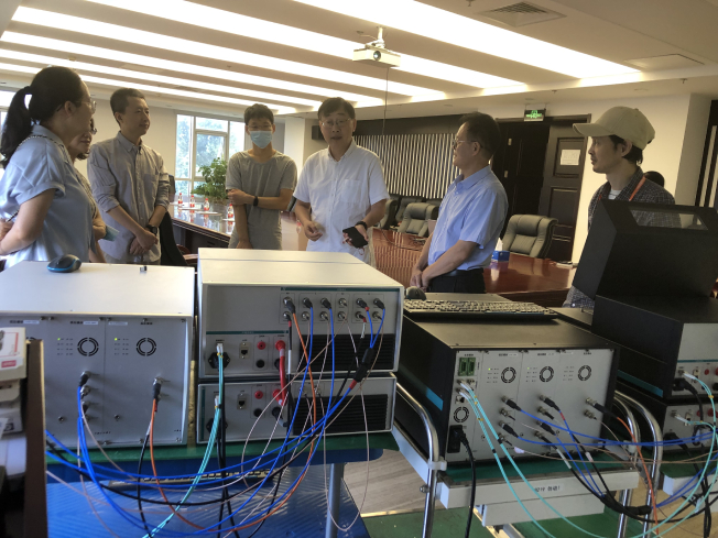 在參觀展示環(huán)節(jié),于秘書長(zhǎng)一行仔細(xì)查看了博電科技面向半導(dǎo)體檢測(cè)、電動(dòng)汽車及充電設(shè)施檢測(cè)、智能電網(wǎng)檢測(cè)等領(lǐng)域的優(yōu)秀產(chǎn)品。