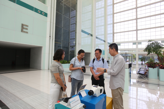 ▲參觀手持式電動(dòng)汽車檢測(cè)儀