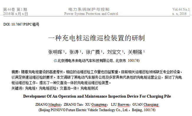 由北京博電未來電動汽車科技有限公司總經(jīng)理張明暉、總工程師張濤、副總經(jīng)理徐廣騰等撰寫的《一種充電樁運維巡檢裝置的研制》一文,成功入選會議論文集。博電科技長期跟蹤國內(nèi)外前沿技術(shù),以自身成熟的智能電力檢測設(shè)備為基礎(chǔ),根據(jù)自身在電動汽車檢測領(lǐng)域的技術(shù)優(yōu)勢,為用戶提供專業(yè)的電動汽車及充電設(shè)施檢測解決方案。