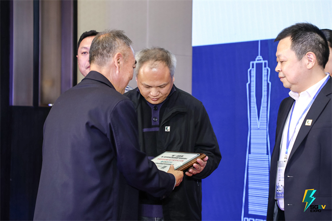▲博電電動總經(jīng)理張明暉代表博電電動上臺領(lǐng)獎