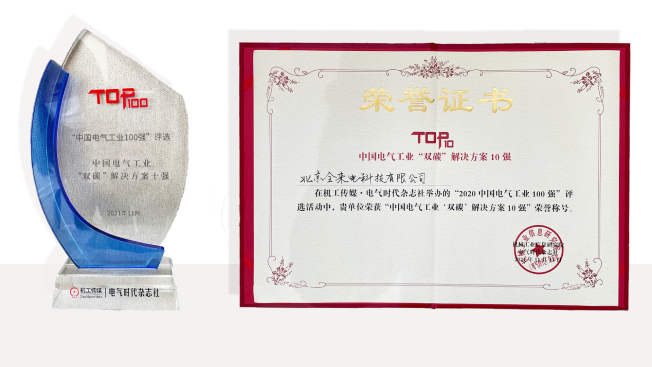 ▲全來電榮獲“2020中國電氣工業(yè)‘雙碳’解決方案TOP10”榮譽稱號