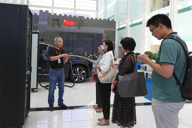 ▲參觀充電樁運(yùn)維測(cè)試儀