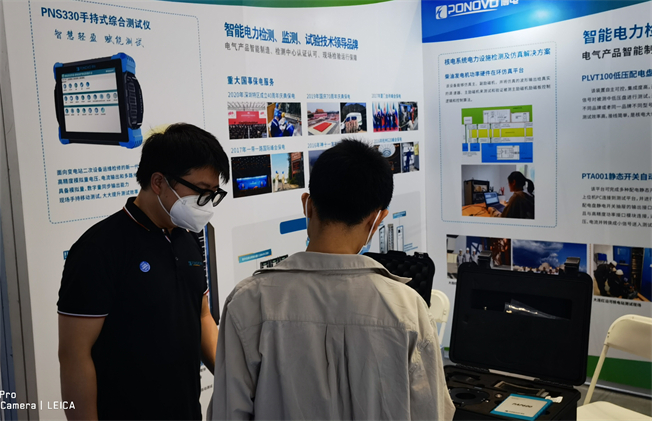 ▲博電新能銷售經(jīng)理吳東介紹帶電檢測系列產(chǎn)品
