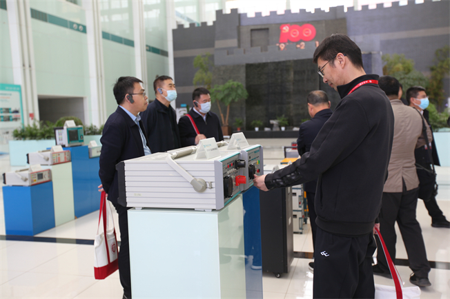 ▲到訪領(lǐng)導(dǎo)仔細(xì)查看博電科技攜式電動(dòng)汽車及充電設(shè)施檢測(cè)設(shè)備