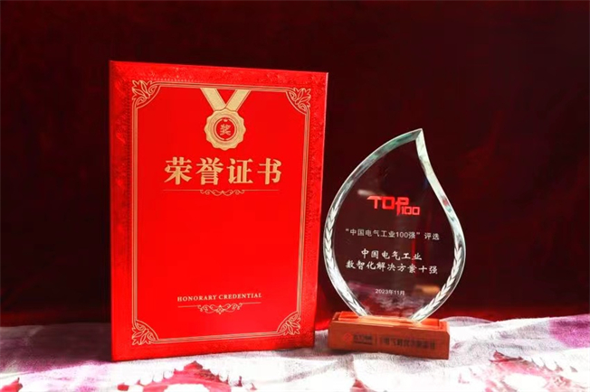 ▲未來電動(dòng)榮獲“2023年度中國(guó)電氣工業(yè)數(shù)智化解決方案 10 強(qiáng)”榮譽(yù)稱號(hào)