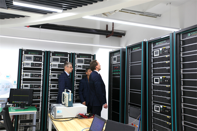 考察交流期間,俄羅斯國家電網(wǎng)電力檢測中心代表一行重點參觀了博電科技功率硬件在環(huán)仿真實驗室。通過介紹和切身感受,Artem Perepelitsyn先生一行詳細了解了博電科技的企業(yè)發(fā)展歷程、技術(shù)創(chuàng)新成果,對博電科技的研發(fā)創(chuàng)新實力有了直觀、深入的了解。