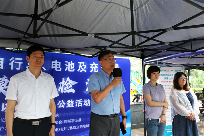 本次活動(dòng)是工業(yè)和信息化部消費(fèi)品工業(yè)司、中國電子技術(shù)標(biāo)準(zhǔn)化研究院,為貫徹落實(shí)國務(wù)院安委辦《電動(dòng)自行車安全隱患全鏈條整治工作部署》,組織相關(guān)單位在北京、廣東、河北三地啟動(dòng)電動(dòng)自行車?yán)吓f鋰電池摸底檢測工作的一部分。活動(dòng)由中國電子技術(shù)標(biāo)準(zhǔn)化研究院、北京市自行車電動(dòng)車行業(yè)協(xié)會(huì)、北京西城陶然亭街道辦共同組織,北京博電科技電氣股份有限公司、北京尤氏科技新能源有限公司以及北京全來電科技有限公司共同實(shí)施。