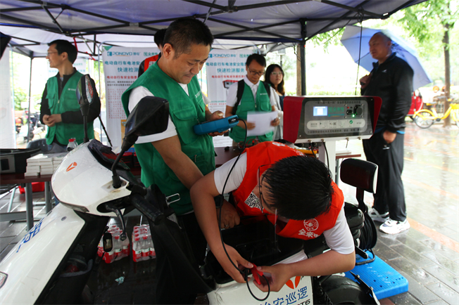 6月7日,淅淅瀝瀝的雨拂去了夏日的悶熱,一場針對電動(dòng)自行車電池及充電器的摸底檢測及以舊換新公益行動(dòng)在北京西城區(qū)陶然亭街道有序開展。