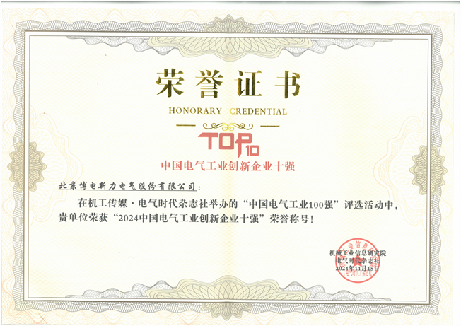11月15日,由機(jī)械工業(yè)信息研究院主辦,中國機(jī)械工業(yè)聯(lián)合會、工信部智庫聯(lián)盟為指導(dǎo)單位的第20屆中國電氣工業(yè)發(fā)展論壇暨“第24屆中國電氣工業(yè)100強(qiáng)研究”發(fā)布會在北京成功舉辦。作為國內(nèi)電力檢測、監(jiān)測、試驗(yàn)領(lǐng)域的優(yōu)秀企業(yè),博電科技憑借研發(fā)實(shí)力、創(chuàng)新產(chǎn)品等綜合優(yōu)勢,斬獲“2024中國電氣工業(yè)創(chuàng)新企業(yè)TOP10”獎項(xiàng)。本次論壇緊抓熱點(diǎn),以“創(chuàng)新破局·贏領(lǐng)‘新’賽道”為主題,深刻解讀“數(shù)字化轉(zhuǎn)型”和“低碳化轉(zhuǎn)型”給電氣產(chǎn)業(yè)帶來的積極影響和實(shí)踐思考,探討解決方案和產(chǎn)品創(chuàng)新、先進(jìn)技術(shù)應(yīng)用落地,推動電氣產(chǎn)業(yè)從高速發(fā)展向高質(zhì)量、可持續(xù)發(fā)展的轉(zhuǎn)型升級。來自政府、企業(yè)、高校及研究機(jī)構(gòu)等將近500人共聚一堂,共饗電氣領(lǐng)域行業(yè)盛宴。