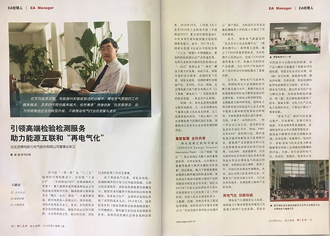 2018年5月,陳衛(wèi)董事長接受機(jī)械工業(yè)信息研究院《電氣應(yīng)用》編輯部專訪,和大家分享了博電電氣近期在園區(qū)發(fā)展、創(chuàng)新技術(shù)以及有關(guān)企業(yè)未來發(fā)展的新動態(tài)。