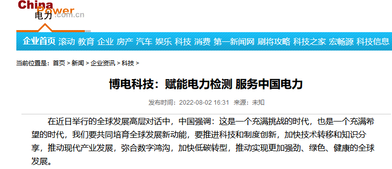 中國(guó)電力網(wǎng)報(bào)道《博電科技 賦能電力檢測(cè) 服務(wù)中國(guó)電力》