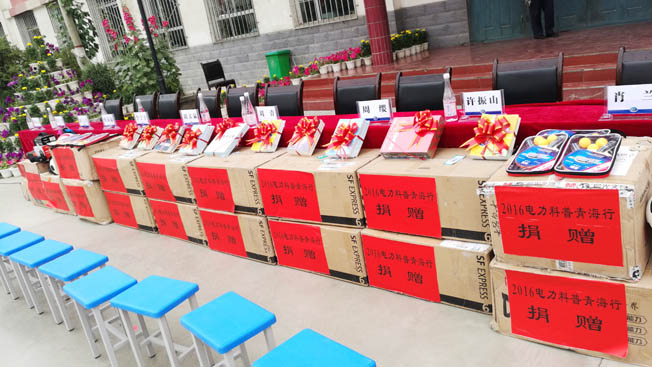 6月29日,2016年中國電機(jī)工程學(xué)會“科普下鄉(xiāng)·情暖戈壁”活動在青海省格爾木市第三中學(xué)舉行。本次活動由中國電機(jī)工程學(xué)會主辦,中國華能集團(tuán)公司青海分公司、國網(wǎng)青海省電力公司共同承辦。中國工程院院士黃其勵、青海省科學(xué)技術(shù)協(xié)會、青海省電力公司、青海省電機(jī)工程學(xué)會、華能集團(tuán)公司青海分公司及部分省電機(jī)工程學(xué)會領(lǐng)導(dǎo)代表共計40余人參與本次會議,北京博電公司作為唯一兩家受邀公司之一,參與本次活動,為西部孩子送去100套書包及學(xué)習(xí)用品,促進(jìn)西部地區(qū)教育事業(yè)發(fā)展。