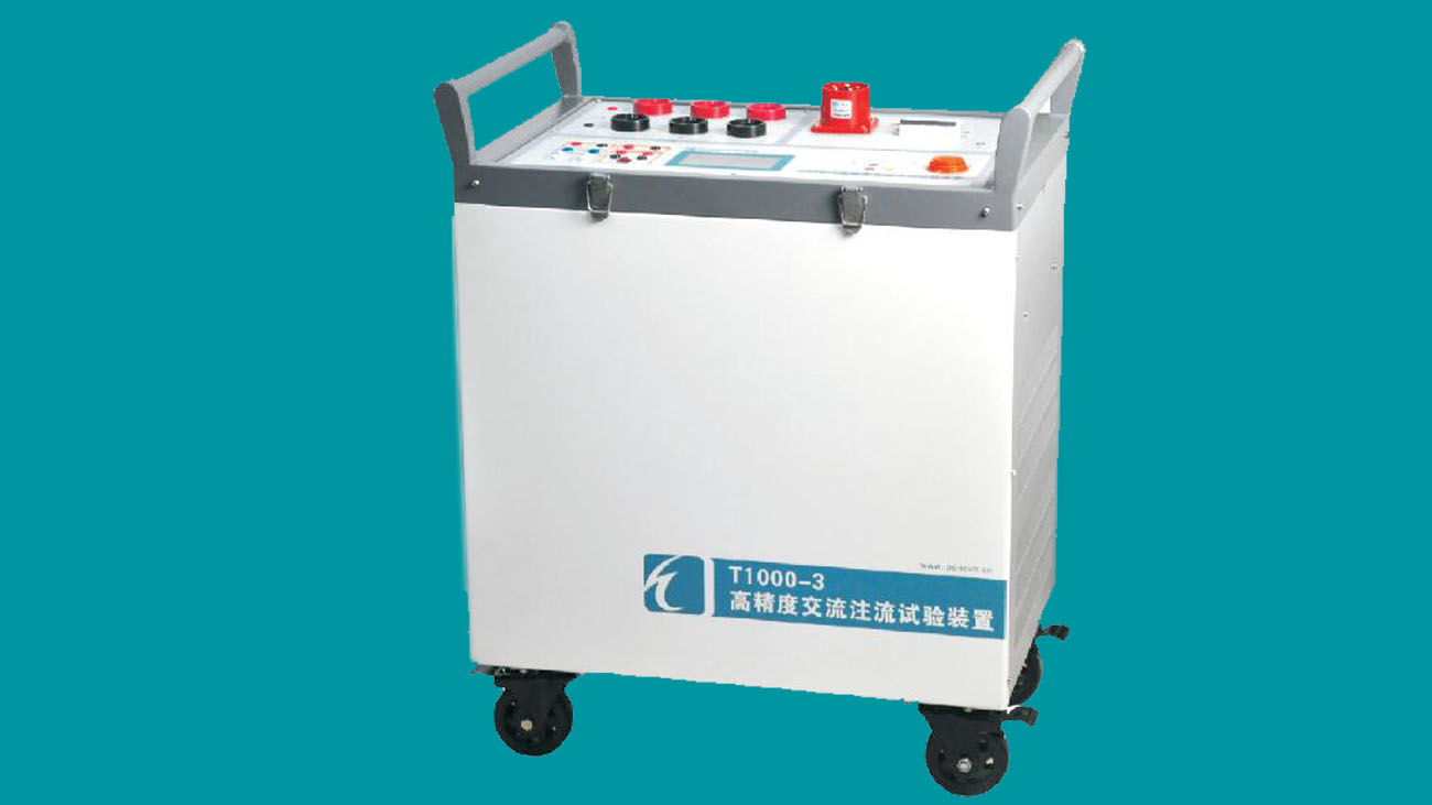 T1000-3高精度交流注流试验装置.该设备用于电流互感器一次通流,带负荷试验。三相电流输出接入电流互感器一次侧,一相电压输出作为相位基准,接入外接相位计,与接入相位计的电流互感器二次电流相位比较可测试电流互感器的相序、极性