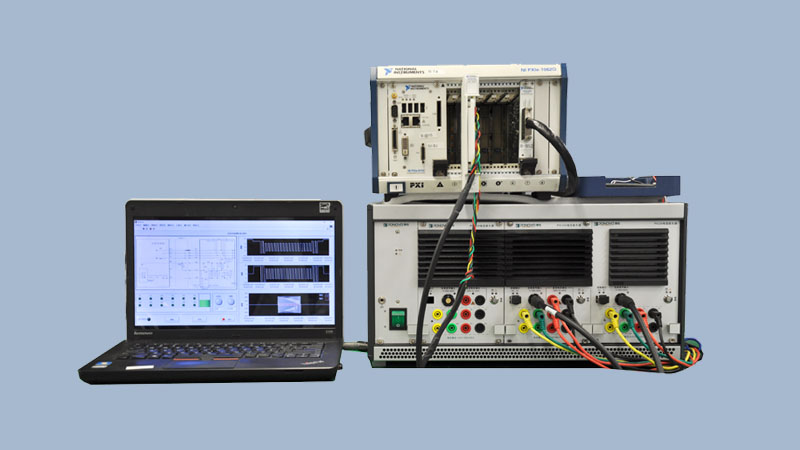 本測試系統(tǒng)用于測試電動汽車充電過程的互操作性和一致性實驗。NI的PXIe-1062Q作為測試主機,通過Labview運行國標或者IEC標準的測試邏輯。測試信號經(jīng)過博電的模塊化功率測試平臺后,輸出到電動汽車的充電端口上,同時接收電動汽車的反饋來完成整個閉環(huán)測試。